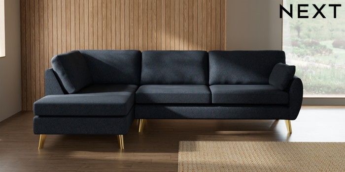 7.3.1 Buy Wilson Large Corner Chaise - Left Hand Tweedy Chenille Navy Blue Metal Tapered - Gold from the Laura Ashley online shop