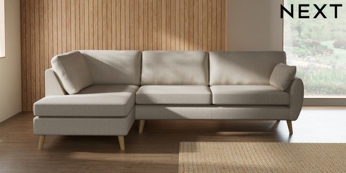 7.3.1 Buy Wilson Large Corner Chaise - Left Hand Tweedy Chenille Oyster Retro Tapered - Light from the Laura Ashley online shop