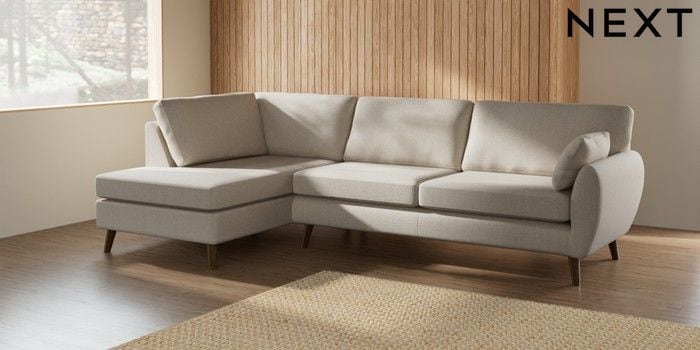 7.3.1 Buy Wilson Large Corner Chaise - Left Hand Tweedy Chenille Oyster Retro Tapered - Mid from the Laura Ashley online shop