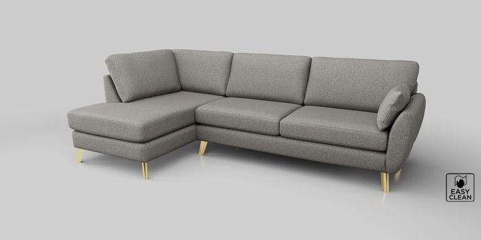 6.12.1 Buy Wilson Large Corner Chaise - Left Hand Woven Chenille Easy Clean Light Grey Metal Tapered - Gold from the Laura Ashley online shop Click here to use our website with more accessibility support, for example screen readers
