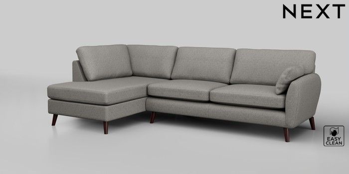 6.12.1 Buy Wilson Large Corner Chaise - Left Hand Woven Chenille Easy Clean Light Grey Retro Tapered - Dark Brown from the Laura Ashley online shop Click here to use our website with more accessibility support, for example screen readers