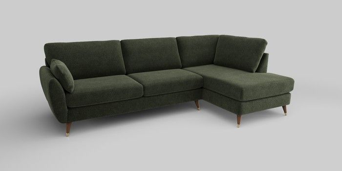 6.12.1 Buy Wilson Large Corner Chaise - Right Hand Boucle Chenille Dark Moss Green Low Retro Tapered Metal Cap - Mid from the Laura Ashley online shop Click here to use our website with more accessibility support, for example screen readers