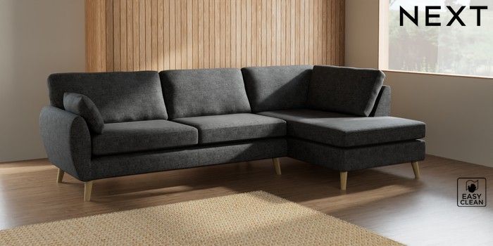 7.3.1 Buy Wilson Large Corner Chaise - Right Hand Boucle Weave Easy Clean Charcoal Grey Retro Tapered - Light from the Laura Ashley online shop