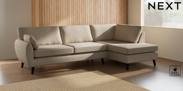 7.3.1 Buy Wilson Large Corner Chaise - Right Hand Boucle Weave Easy Clean Dark Natural Retro Tapered - Dark from the Laura Ashley online shop