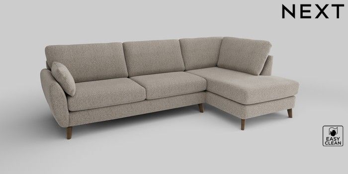 6.12.1 Buy Wilson Large Corner Chaise - Right Hand Chunky Boucle Easy Clean Dove Retro Tapered - Mid from the Laura Ashley online shop Click here to use our website with more accessibility support, for example screen readers
