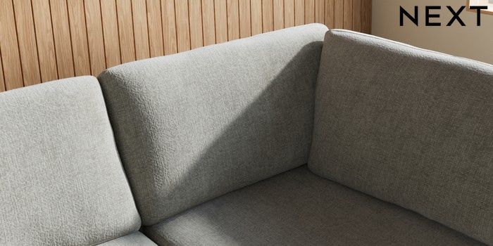 7.3.1 Buy Wilson Large Corner Chaise - Right Hand Chunky Chenille Light Grey Low Retro Tapered Metal Cap - Mid from the Laura Ashley online shop