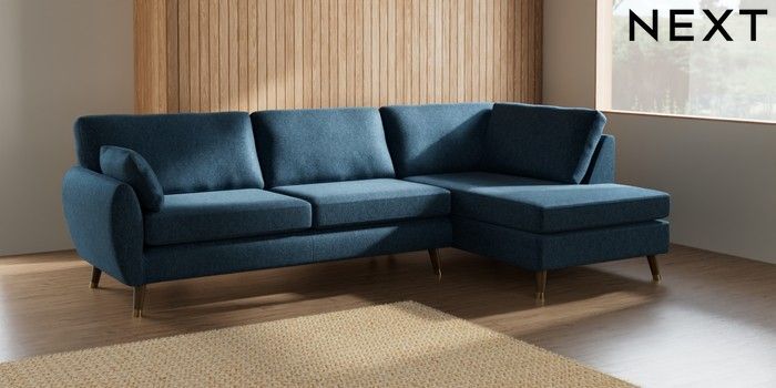 7.3.1 Buy Wilson Large Corner Chaise - Right Hand Cotswold Chenille Dark Blue Low Retro Tapered Metal Cap - Mid from the Laura Ashley online shop