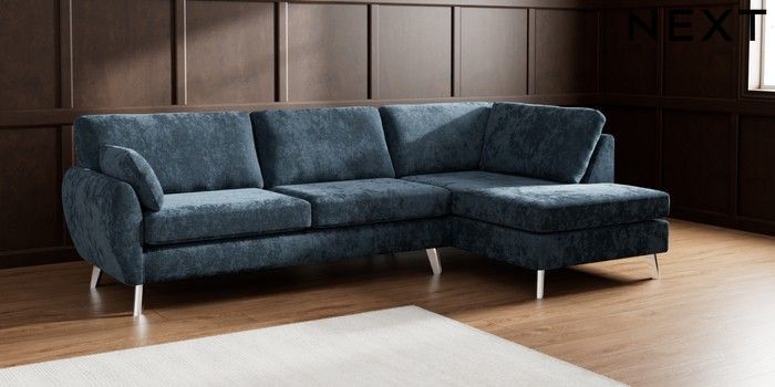 7.3.1 Buy Wilson Large Corner Chaise - Right Hand Distressed Velour Midnight Blue Metal Tapered - Chrome from the Laura Ashley online shop