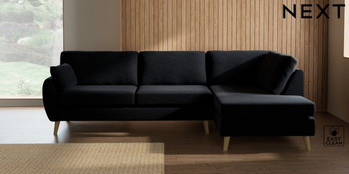 7.3.1 Buy Wilson Large Corner Chaise - Right Hand Fine Chenille Easy Clean Black Retro Tapered - Light from the Laura Ashley online shop