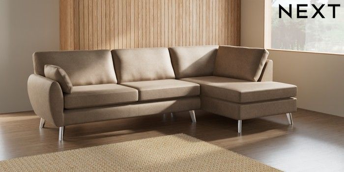 7.3.1 Buy Wilson Large Corner Chaise - Right Hand Luxe Chenille Mid Camel Beige Metal Tapered - Chrome from the Laura Ashley online shop