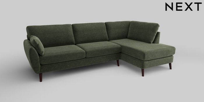 6.12.1 Buy Wilson Large Corner Chaise - Right Hand Luxe Chenille Mid Green Retro Tapered - Dark Brown from the Laura Ashley online shop Click here to use our website with more accessibility support, for example screen readers