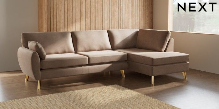 7.3.1 Buy Wilson Large Corner Chaise - Right Hand Luxe Chenille Mid Natural Metal Tapered - Gold from the Laura Ashley online shop