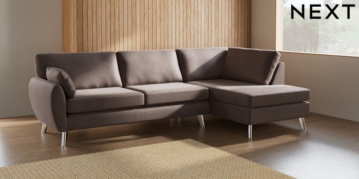 7.3.1 Buy Wilson Large Corner Chaise - Right Hand Luxe Chenille Mink Brown Metal Tapered - Chrome from the Laura Ashley online shop