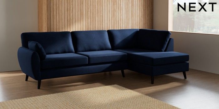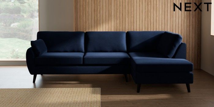 7.3.1 Buy Wilson Large Corner Chaise - Right Hand Luxe Chenille Navy Blue Retro Tapered - Dark from the Laura Ashley online shop
