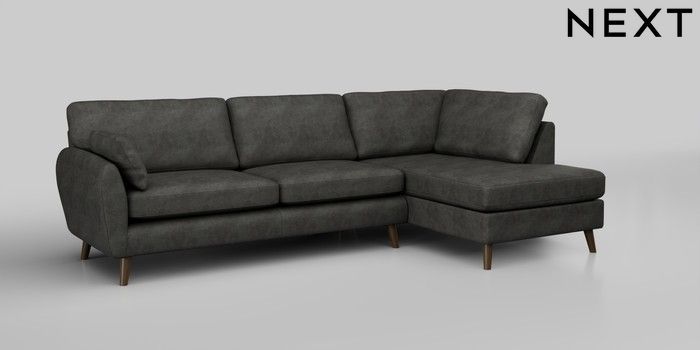 6.12.1 Buy Wilson Large Corner Chaise - Right Hand Monza Faux Leather Easy Clean Dark Grey Retro Tapered - Mid from the Laura Ashley online shop Click here to use our website with more accessibility support, for example screen readers