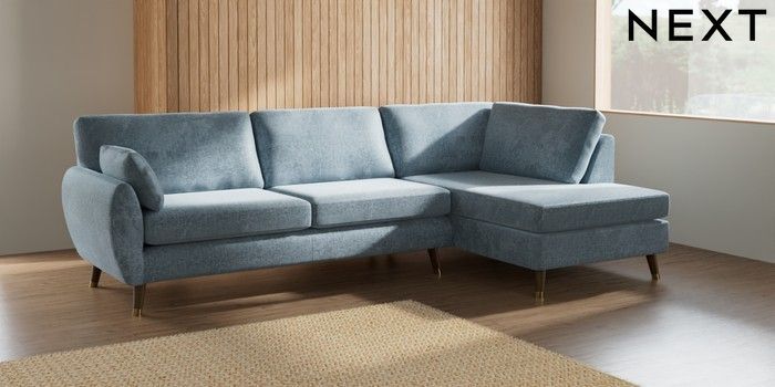 7.2.6 Buy Wilson Large Corner Chaise - Right Hand Plush Chenille Light Blue Low Retro Tapered Metal Cap - Mid from the Laura Ashley online shop Click here to use our website with more accessibility support, for example screen readers