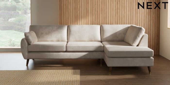 7.3.1 Buy Wilson Large Corner Chaise - Right Hand Plush Chenille Oyster Low Retro Tapered Metal Cap - Mid from the Laura Ashley online shop
