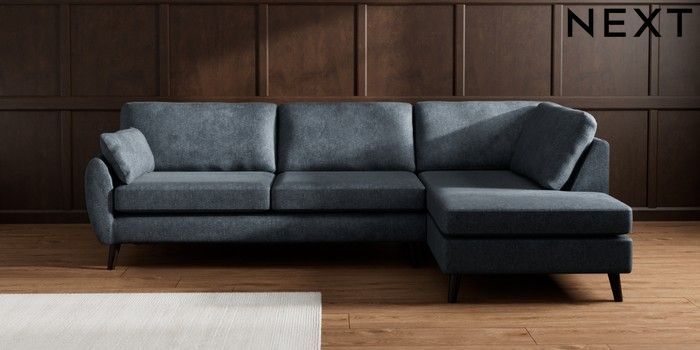 7.3.1 Buy Wilson Large Corner Chaise - Right Hand Plush Chenille Slate Blue Retro Tapered - Dark from the Laura Ashley online shop