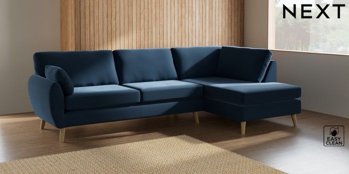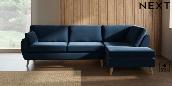 7.3.1 Buy Wilson Large Corner Chaise - Right Hand Plush Velvet Easy Clean Airforce Blue Retro Tapered - Light from the Laura Ashley online shop