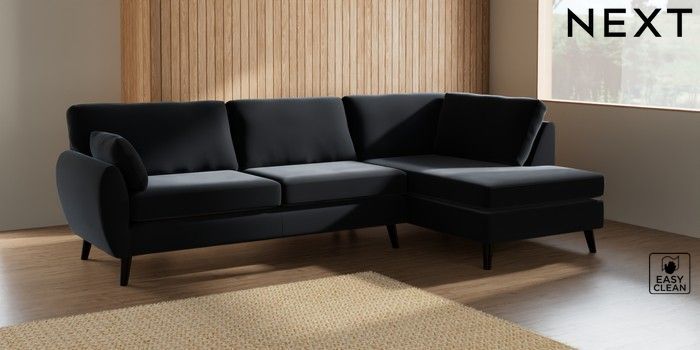 7.3.1 Buy Wilson Large Corner Chaise - Right Hand Plush Velvet Easy Clean Charcoal Grey Retro Tapered - Dark from the Laura Ashley online shop