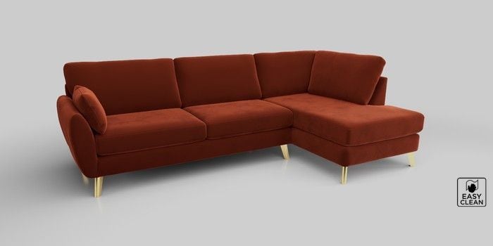 6.12.1 Buy Wilson Large Corner Chaise - Right Hand Plush Velvet Easy Clean Ginger Orange Metal Tapered - Gold from the Laura Ashley online shop Click here to use our website with more accessibility support, for example screen readers