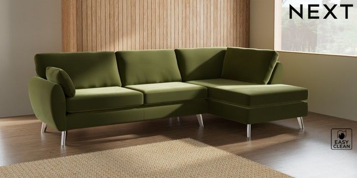 7.3.1 Buy Wilson Large Corner Chaise - Right Hand Plush Velvet Easy Clean Mid Olive Green Metal Tapered - Chrome from the Laura Ashley online shop
