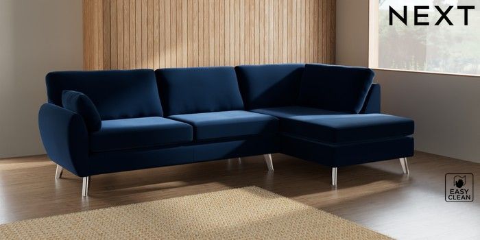 7.3.1 Buy Wilson Large Corner Chaise - Right Hand Plush Velvet Easy Clean Navy Blue Metal Tapered - Chrome from the Laura Ashley online shop