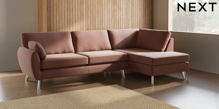 7.3.1 Buy Wilson Large Corner Chaise - Right Hand Relaxed Linen Look Light Rust Brown Metal Tapered - Chrome from the Laura Ashley online shop