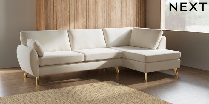 7.3.1 Buy Wilson Large Corner Chaise - Right Hand Ripple Chenille Oyster Metal Tapered - Gold from the Laura Ashley online shop