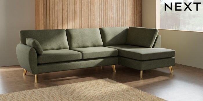7.3.1 Buy Wilson Large Corner Chaise - Right Hand Tweedy Chenille Mid Moss Green Metal Tapered - Gold from the Laura Ashley online shop
