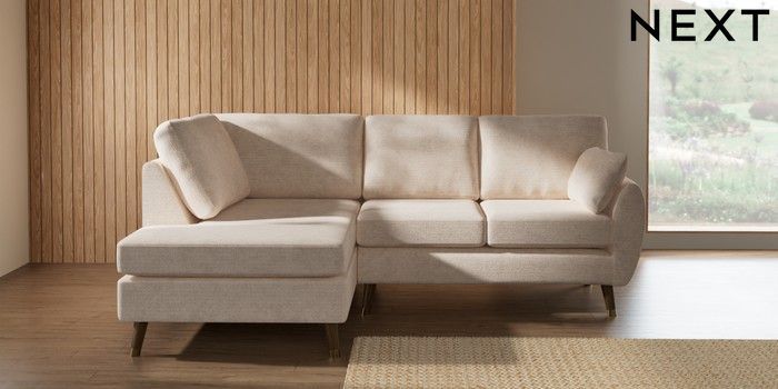 7.3.1 Buy Wilson Medium Corner Chaise - Left Hand Boucle Chenille Oyster Low Retro Tapered Metal Cap - Mid from the Laura Ashley online shop