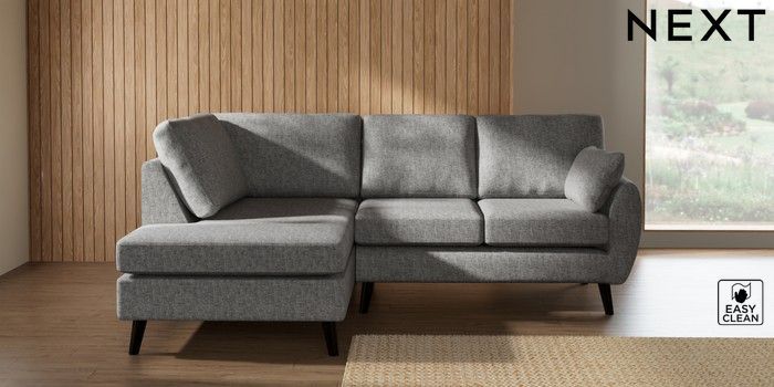 7.3.1 Buy Wilson Medium Corner Chaise - Left Hand Chunky Boucle Easy Clean Light Grey Retro Tapered - Dark from the Laura Ashley online shop