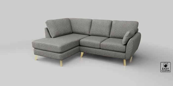 6.12.1 Buy Wilson Medium Corner Chaise - Left Hand Chunky Boucle Easy Clean Mid Grey Metal Tapered - Gold from the Laura Ashley online shop Click here to use our website with more accessibility support, for example screen readers
