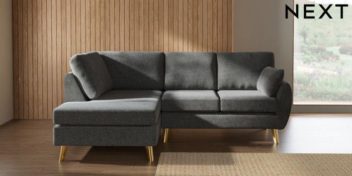 7.3.1 Buy Wilson Medium Corner Chaise - Left Hand Chunky Chenille Dark Grey Metal Tapered - Gold from the Laura Ashley online shop