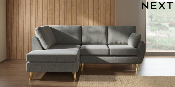7.3.1 Buy Wilson Medium Corner Chaise - Left Hand Chunky Chenille Light Grey Metal Tapered - Gold from the Laura Ashley online shop Click here to use our website with more accessibility support, for example screen readers