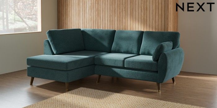 7.3.1 Buy Wilson Medium Corner Chaise - Left Hand Chunky Chenille Mid Teal Green Low Retro Tapered Metal Cap - Mid from the Laura Ashley online shop
