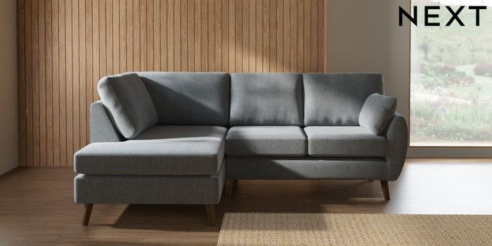 7.3.1 Buy Wilson Medium Corner Chaise - Left Hand Chunky Marl Mid Grey Retro Tapered - Mid from the Laura Ashley online shop