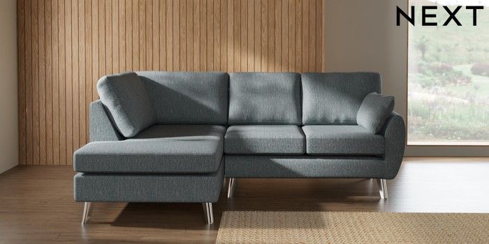 7.3.1 Buy Wilson Medium Corner Chaise - Left Hand Chunky Weave Mid Blue Metal Tapered - Chrome from the Laura Ashley online shop