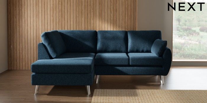 7.3.1 Buy Wilson Medium Corner Chaise - Left Hand Cotswold Chenille Dark Blue Metal Tapered - Chrome from the Laura Ashley online shop