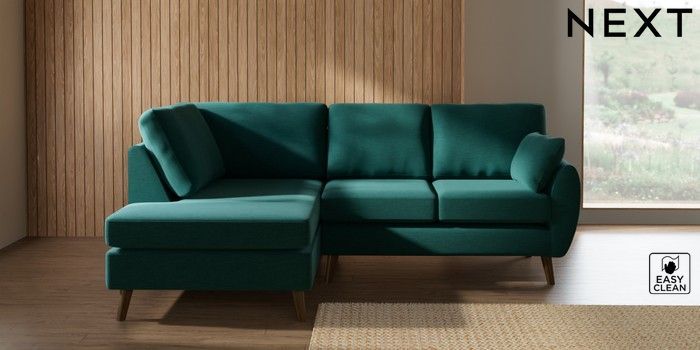 7.3.1 Buy Wilson Medium Corner Chaise - Left Hand Fine Chenille Easy Clean Dark Juniper Green Retro Tapered - Mid from the Laura Ashley online shop Click here to use our website with more accessibility support, for example screen readers