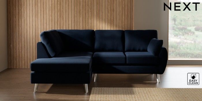 7.3.1 Buy Wilson Medium Corner Chaise - Left Hand Fine Chenille Easy Clean Dark Navy Blue Metal Tapered - Chrome from the Laura Ashley online shop