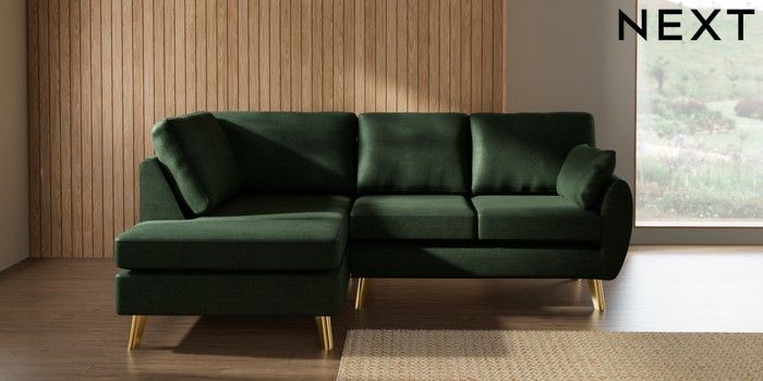 7.3.1 Buy Wilson Medium Corner Chaise - Left Hand Luxe Chenille Dark Green Metal Tapered - Gold from the Laura Ashley online shop