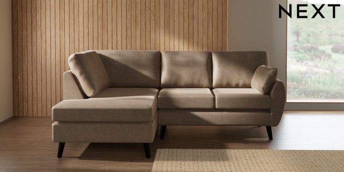 7.3.1 Buy Wilson Medium Corner Chaise - Left Hand Luxe Chenille Mid Camel Beige Retro Tapered - Dark from the Laura Ashley online shop