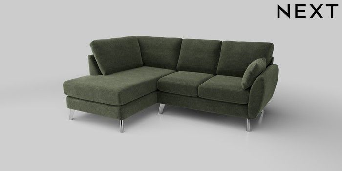 6.12.1 Buy Wilson Medium Corner Chaise - Left Hand Luxe Chenille Mid Green Metal Tapered - Chrome from the Laura Ashley online shop Click here to use our website with more accessibility support, for example screen readers