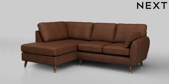 6.12.1 Buy Wilson Medium Corner Chaise - Left Hand Monza Faux Leather Easy Clean Chestnut Brown Low Retro Tapered Metal Cap - Mid from the Laura Ashley online shop Click here to use our website with more accessibility support, for example screen readers