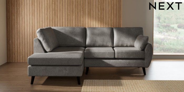7.3.1 Buy Wilson Medium Corner Chaise - Left Hand Plush Chenille Light Grey Retro Tapered - Dark from the Laura Ashley online shop