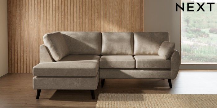 7.3.1 Buy Wilson Medium Corner Chaise - Left Hand Plush Chenille Light Natural Retro Tapered - Dark from the Laura Ashley online shop