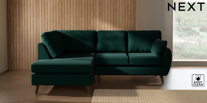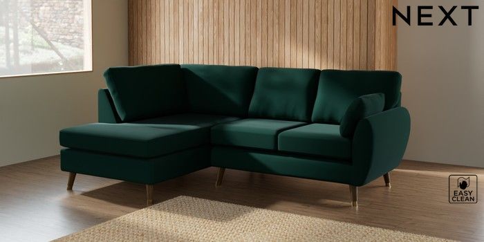 7.3.1 Buy Wilson Medium Corner Chaise - Left Hand Plush Velvet Easy Clean Bottle Green Low Retro Tapered Metal Cap - Mid from the Laura Ashley online shop