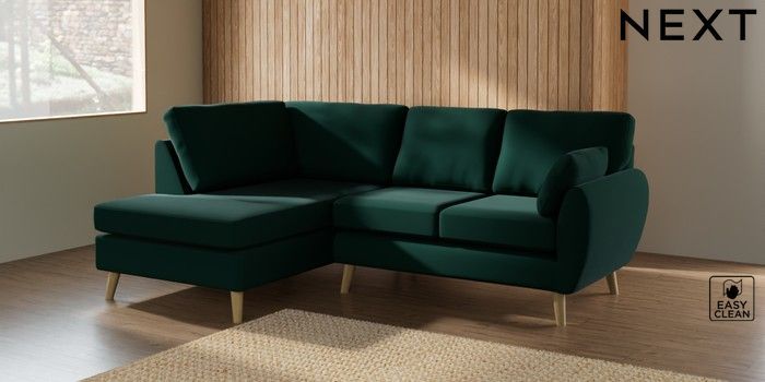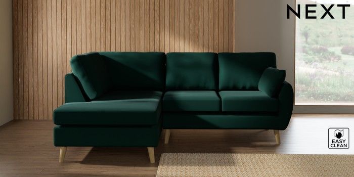 7.3.1 Buy Wilson Medium Corner Chaise - Left Hand Plush Velvet Easy Clean Bottle Green Retro Tapered - Light from the Laura Ashley online shop