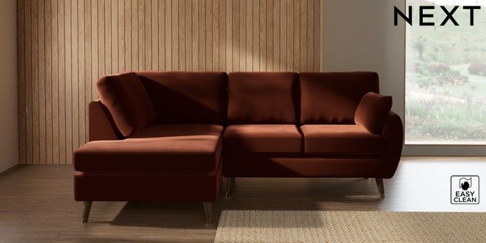 7.3.1 Buy Wilson Medium Corner Chaise - Left Hand Plush Velvet Easy Clean Ginger Orange Low Retro Tapered Metal Cap - Mid from the Laura Ashley online shop